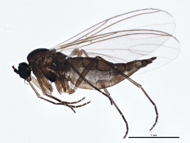Los adultos son moscas pequeñas (1/8 de pulgada de largo), frágiles de gris a negras con patas largas y delgadas y antenas filiformes. Sus alas son claras o de color ahumado sin patrón y con pocas venas distintas. Las larvas son de color claro a blanco cremoso y pueden crecer hasta aproximadamente 1/4 de pulgada de largo. Tienen cápsulas de cabeza negra brillante.