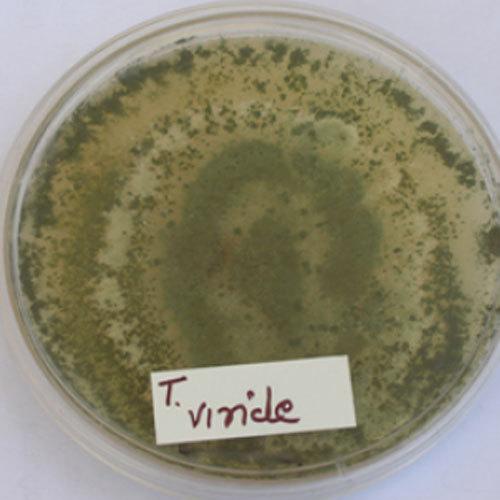 Este contaminante es posiblemente el más común y uno de los más agresivos. El moho verde causado por Trichoderma harzianum se caracteriza por formarse a través de un micelio blanco muy agresivo que crece sobre el pan y sobre el micelio, provocando una decadencia crónica del cultivo. Las masas de esporas que eventualmente se forman son de color verde esmeralda. Ésta es actualmente el contaminante más importante en la industria del cultivo de setas. Otros mohos verdes pueden definirse mejor como indicadores, ya que no parecen ser tan agresivos como T. harzianum. Pero no debemos confiarnos ya que el Trichoderma viride produce toxinas que disuelven las paredes de las células de los hongos. Trichoderma a menudo se confunde con los mohos Penicillium o Aspergillus y viceversa, ya que los tres se ven muy similares y no son fáciles de distinguir sin el uso de un microscopio.