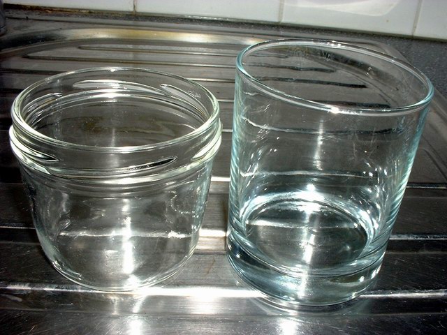 Los tarros deberán tener una capacidad aproximada (240ml). Se pueden utilizar tarros de conservas o vasos (ver foto), lo importante es que la boca sea más ancha que la base, de éste modo y una vez colonizado por el micelio, podremos sacar el pastel del vaso o tarro de una sola pieza sin dificultades.