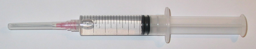 Para poder menear la jeringuilla adecuadamente, es conveniente que tenga alguna burbuja de aire dentro. Si la jeringuilla que has hecho o comprado no tiene burbuja alguna, puedes introducir 1 cc de aire estéril succionándolo mientras quemas la punta de la aguja al rojo vivo con un mechero.