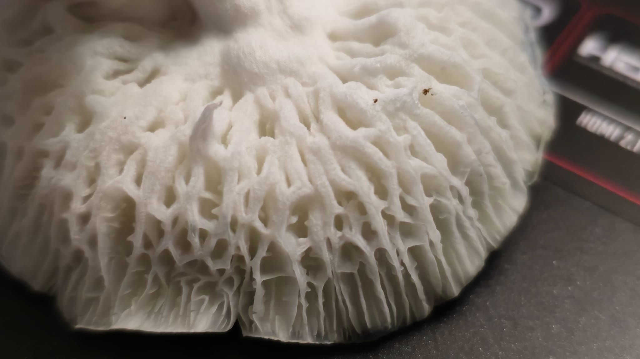 Mutación albina de naturaleza salvaje Espora roja mexicana, crecen frutos grandes cubiertos de plata con branquias ramificadas inusuales estructura