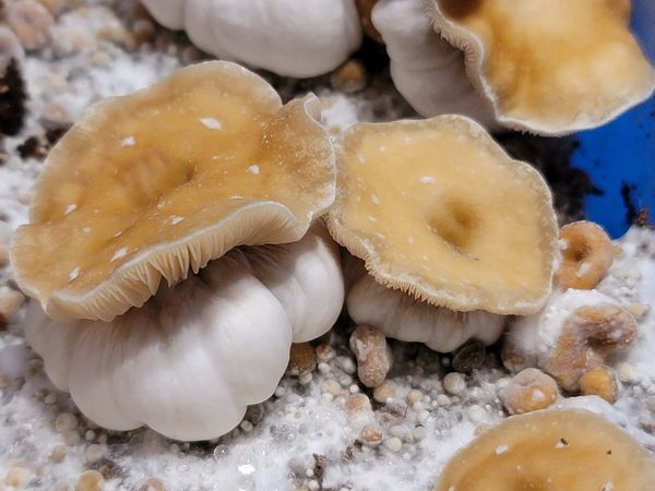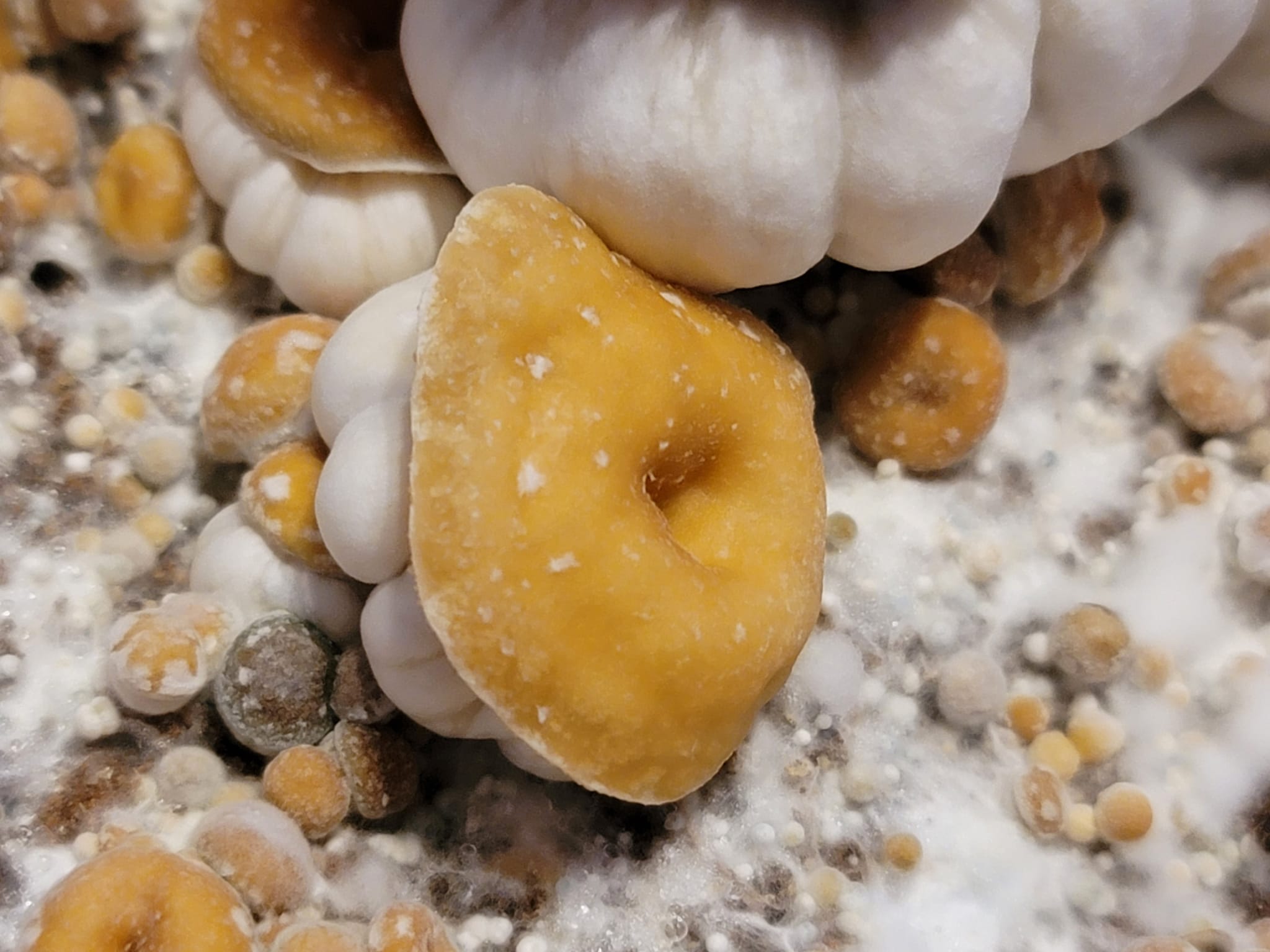 KSSS/TAT cruzado, en cuclillas pequeñas calabazas con rizadas gorras doradas