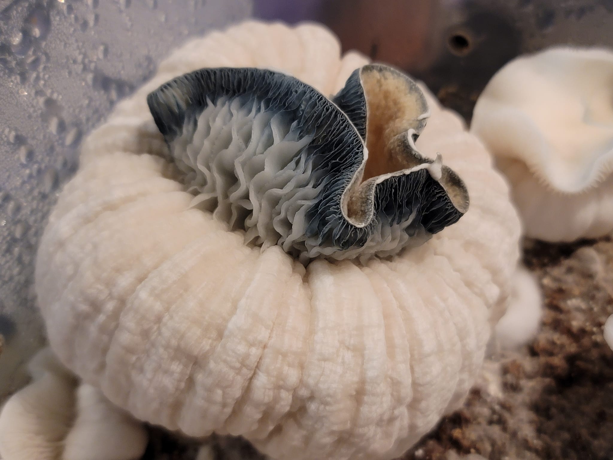 Albino súper denso squats en forma de calabaza con gorras rizadas