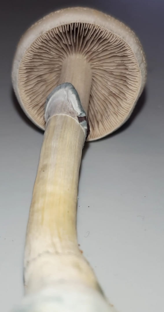P. natalensis no es muy conocida entre los psiconautas (la especie solo fue descrita científicamente hace unas pocas décadas), pero a quienes la han probado les gusta y la describen como P. cubensis pero mejor.Tallo: 20-85 mm de largo, carne blanca con hematomas de color azul con un matiz verde claro donde está lesionado. Ocasionales restos de velo parcial en el tallo. Con frecuencia, los restos parciales del velo se adhieren al perímetro de la gorra, dejando un anillo en forma de red alrededor del área inferior más externa de la gorra. *Tenga en cuenta que no todos los cuerpos frutales del Cascanueces tienen restos de velo.